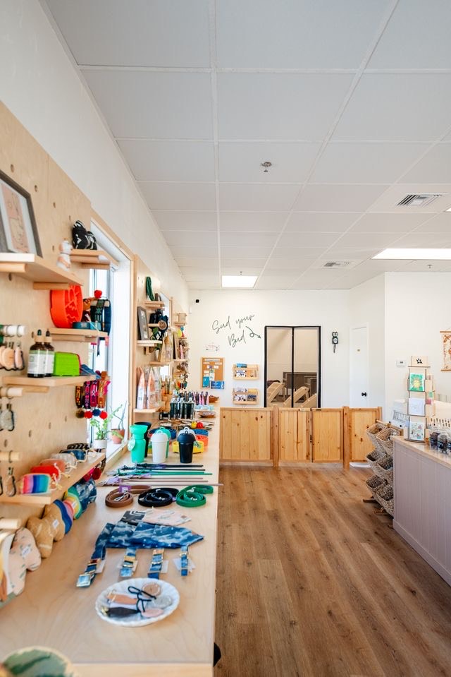 The store itself is brightly lit and has enough space for dogs to come check out new toys and sniff at the treats behind glass. Keithley’s homemade dog product business Wylie Mutt has its own section in the corner with ceramic bowls, collars, and leashes. All of the items for sale at the boutique are made from small businesses in the area.