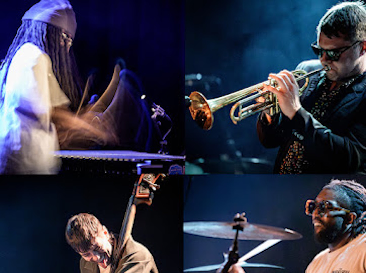 A pleasant, and brainy and raucous, surprise on the 805 music calendar came with the arrival of the Messthetics with James Brandon Lewis, who stopped by Ojai’s Deer Lodge on Sunday night. The quartet, pumped up by Fugazi members Brendan Canty and Lally in the drums-bass foundation and the solid soloist/frontline department led by wily fine guitarist Anthony Pirog (who can sound like Vernon Reid in Ronald Shannon Jackson and The Decoding Society) and one of the most talked-about saxists in jazz of the moment, James Brandon Lewis, released an acclaimed album on the Impulse! Records this year. It’s the kind of in-your-face, rock-jazz merger that extends its allure to jazz heads and anyone with a sense of dance impulse and artful musical firepower.