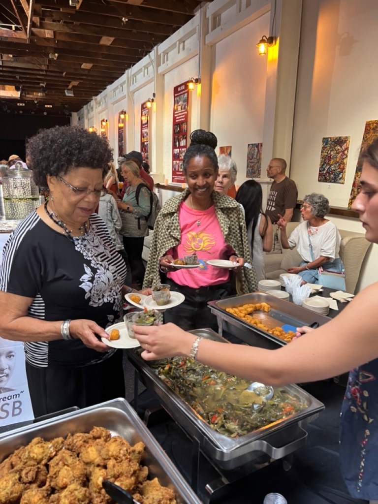 Soul Bites is both a restaurant and community space, said co-owner Stirling Nix-Bradley, who runs the business with his partner and wife, Rose Bradley. The establishment, located on lower State Street, serves soul food classics such as fried chicken and macaroni and cheese alongside vegan options like vegan soul sandwiches and crab cakes. Paintings from area artists decorate the walls, and the stage hosts concerts and events. Last February, the space hosted the Santa Barbara Black Culture House, a series of events focused on Black art and culture. Nix-Bradley said it is one of the few black-owned businesses in town.