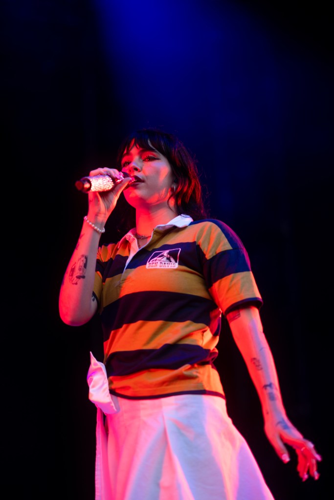 After some pretty high energy songs, including “Missing Out,” which they introduced as a new song they hadn’t sung yet on the tour, the band pulled in close together for a stripped down acoustic segment, which was a nice change of pace — especially when there was a surprise guest vocal appearance by Remi Wolf, who was in town to play her own solo show at the Bowl the following night.