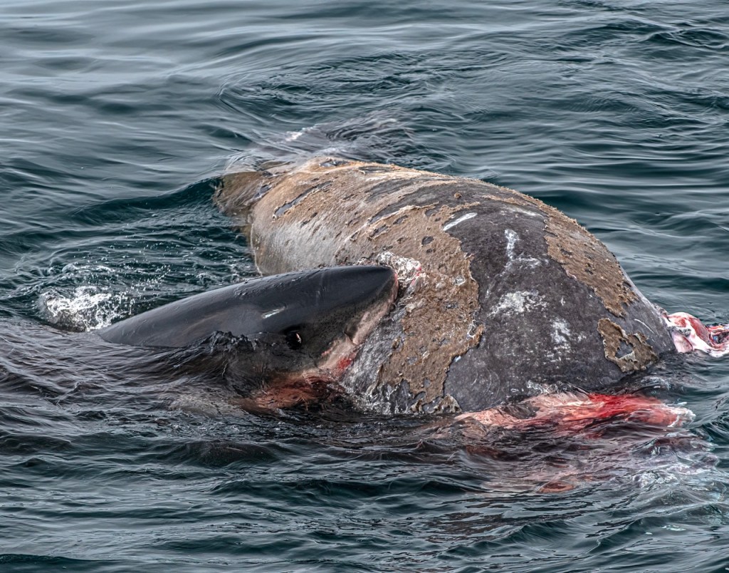 “The shark was not on the seal when we arrived, but returned to feed within 10 minutes. It left a second time, for about 10 more minutes, and again attacked the seal carcass,” he explained. “We were incredibly close to the action thanks to the extensive skills of Captain Dave, himself a local white shark expert.”