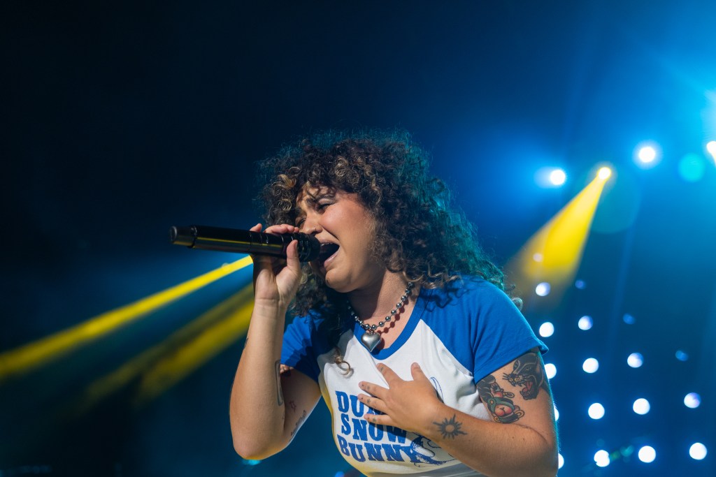 Then came Wolf, in a tomboyish “Dumb Snow Bunny” baseball tee and cargo pants, blasting the crowd with cotton-candy, Care Bear–cute aggression. Her seven-piece backing band powered the genre-bending artist through modern pop (“Cinderella”), artsy grunge (“Frog Rock”), groovy funk (“Toro”), and even country (a driving, straight-faced cover of “Life Is A Highway” by Rascal Flatts).