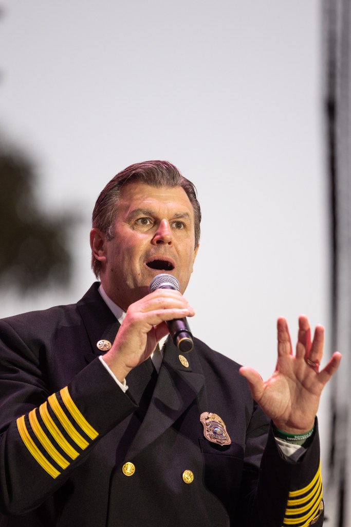 Along with appearances by several first responder representatives, Prince Harry presented the Heart of the Community Award to Loren Courtney, a veteran Army helicopter pilot who served as a Flight Lead for air assault missions. He manned the flights for many high-ranking officials from the Secretary of Defense, to Chair of the Joint Chief of Staff, to President Clinton’s visit to Africa. He worked with Special Operations teams, infantry soldiers (both U.S. and foreign soldiers), humanitarian resupply missions, medevac, and firefighting. He now flies for the Santa Barbara County Air Support unit, which supports both the Fire and the Sheriff’s departments.