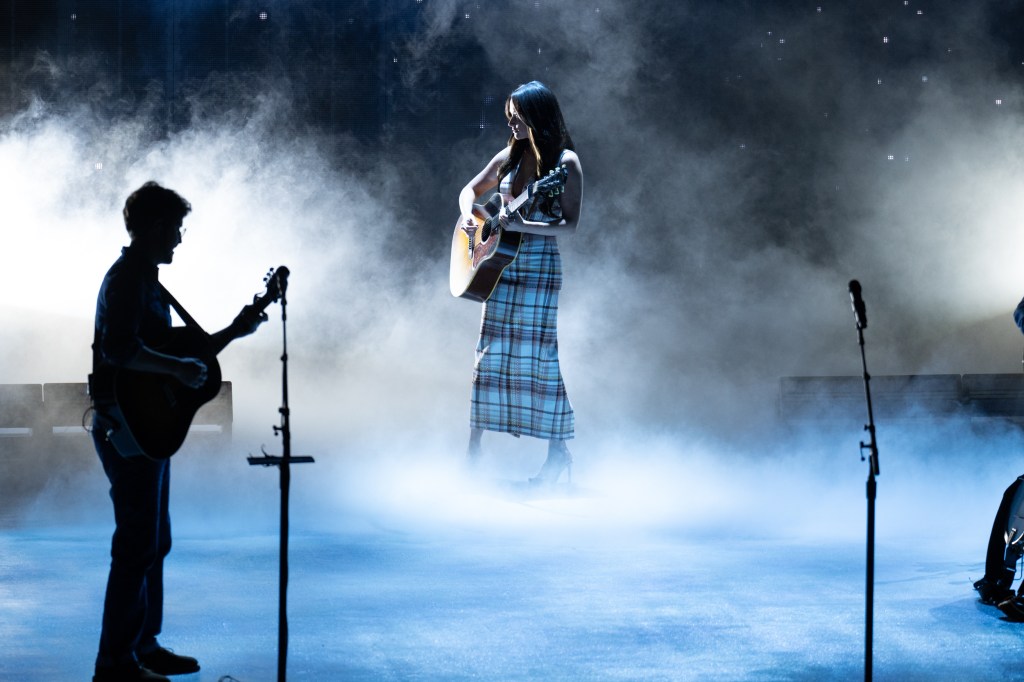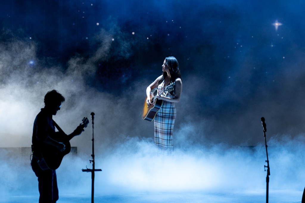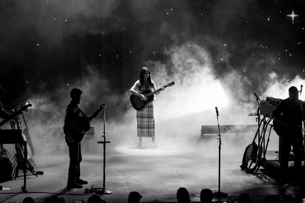 The evening — which sadly had no warm-up band, although Father John Misty and Nickel Creek both joined Musgraves for the Deeper Well World Tour before and after the Santa Barbara September 25 show — began theatrically, with green smoke, starry lights, and a silhouetted Vargas Girlish figure falling from the sky before that image was seemingly transformed into Musgraves, who walked on stage with her guitar singing “Cardinal” from her 2024 album Deeper Well.