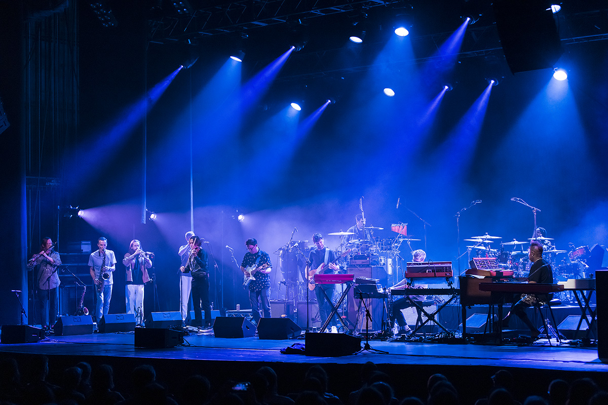 The taut but rambunctious, hook-filled little big band à la funk, energized a full house at the Arlington Theatre. Jazz nerd ears are not required to enjoy the goods, a setlist largely leaning on their latest album, Empire Central. In the ever-shifting ranks — led by indomitable, independent-minded, founder-composer-bassist-ringleader Michael League — was the bold tenor saxist Bob Reynolds, who has local linkages.