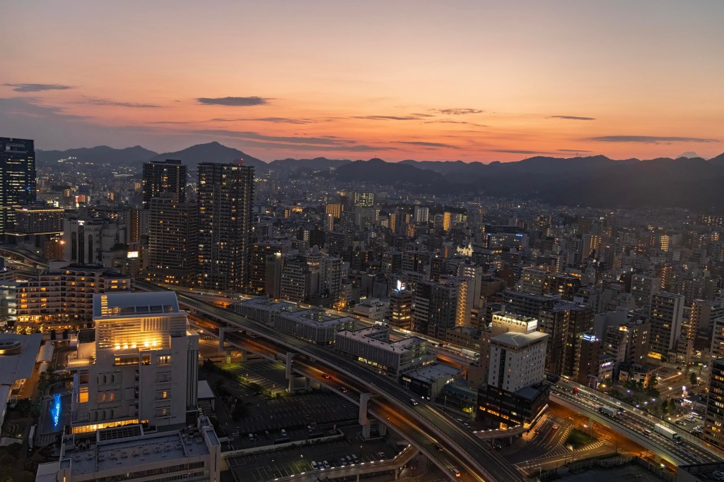However, we discover a path we never would have known. It begins just below the museum at Ikutagawa Park, that follows the Ikuta River, with a marvelous bas-relief of dragons and fish on the concrete walls that bound the river. The park has a Go table, reminding me of Brancusi’s Table of Silence at Târgu Jiu in his native Romania. But this table has a checkered Go pattern etched into its polished surface, surrounded by five stone stools. Beyond there are a few other en situ sculptures, and the path continues. So, we take it. After all, rivers lead to the sea, and our hotel is by the sea. We amble past a children’s playground, a few people on bikes, a couple embracing beneath a shady tree, a rather unremarkable backyard with boxes and clotheslines, made glorious by a crepe myrtle tree in full hot pink effloresce.