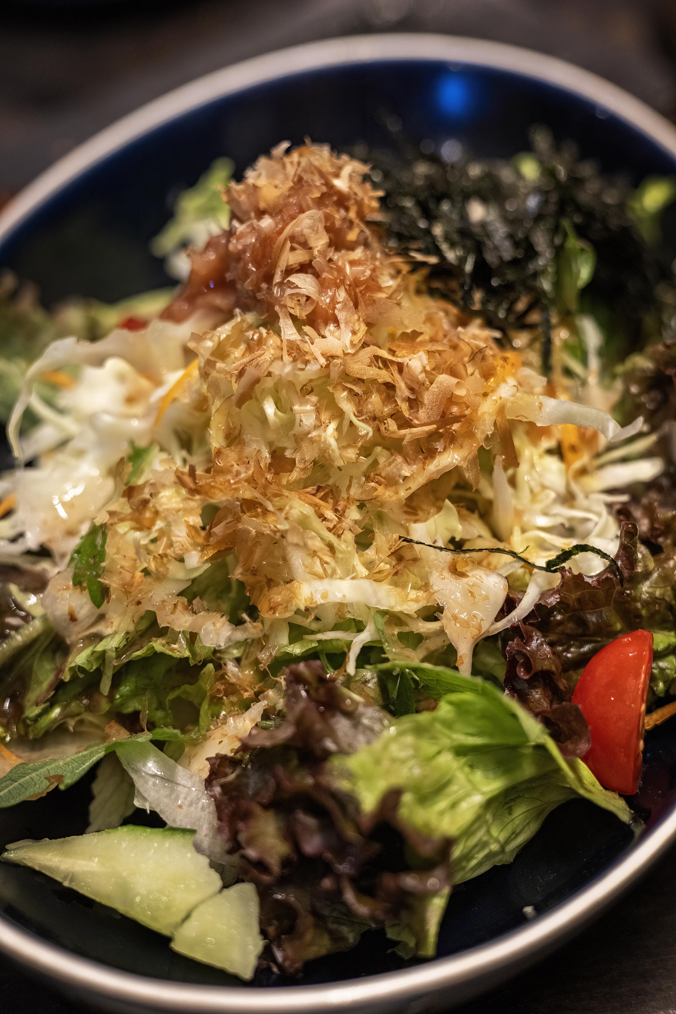 A final dinner out before greeting the 115 guests, plus staff and crew to explore “Coastal Japan” on the Resolution, we return to a place we discovered and loved on our first evening in Kobe. In a place famous for its massaged cows that create a meat that in appearance rivals the marbleized endpapers of 19th century novels — we take a leaner option. On the edges of Chinatown, I spy an interesting façade, with antler horn door handles. We enter, a light Django Rinehardt–ish tune plays from the kitchen, five tables face the open cooking area and one in the back. They serve only venison. Yep, beyond the cow pastures, there is a forest, and in the forest, there are deer. Silently, we had each been craving another venison plate, and knew we had to return. Tender, rare, sliced venison, smothered in golden slivers of sautéed garlic, along with side dishes of house-made kimchi and a savory pickled fresh plum salad with lettuces, carrot, and cabbage in a vinaigrette, accompanied with a passable red wine and the same delightful music. I thank the cook, and in sign language and smiles, I ask what he’s listening to. He smiles, and simply says, “Jazz-u!”