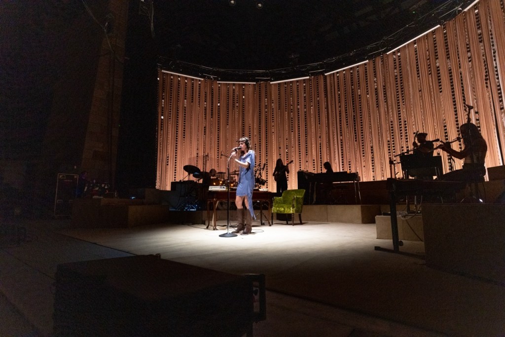 As indie songstress Clairo sauntered out to the stage in a glittery periwinkle dress with big hair and a gold backdrop framing her full band complete with a wind section, I wasn’t sure if I was at the Santa Barbara Bowl or a 1960’s Burt Bacharach TV special.