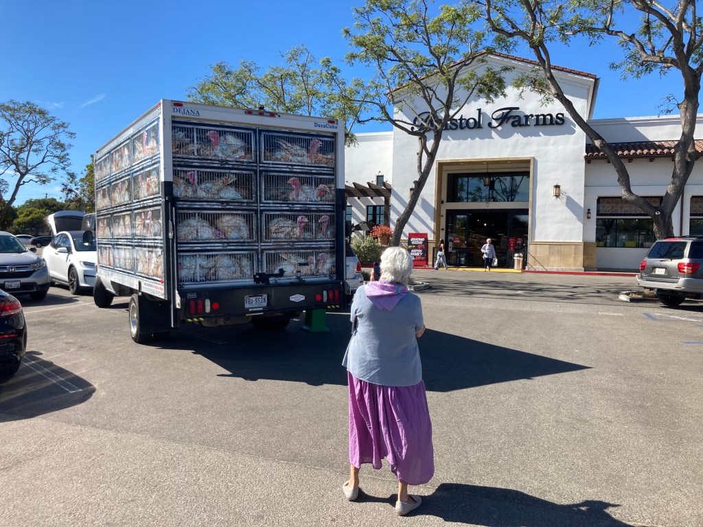 An anti-animal-cruelty campaign headed by PETA made a stop at Bristol Farms in Santa Barbara on October 21, parking a truck adorned with hyper-realistic turkey photos and blaring recorded turkey noises in front of the store. The “Hell on Wheels” campaign is hoping to ruffle some Thanksgiving feathers and make turkey-eaters think twice about what they’re putting on their plates.