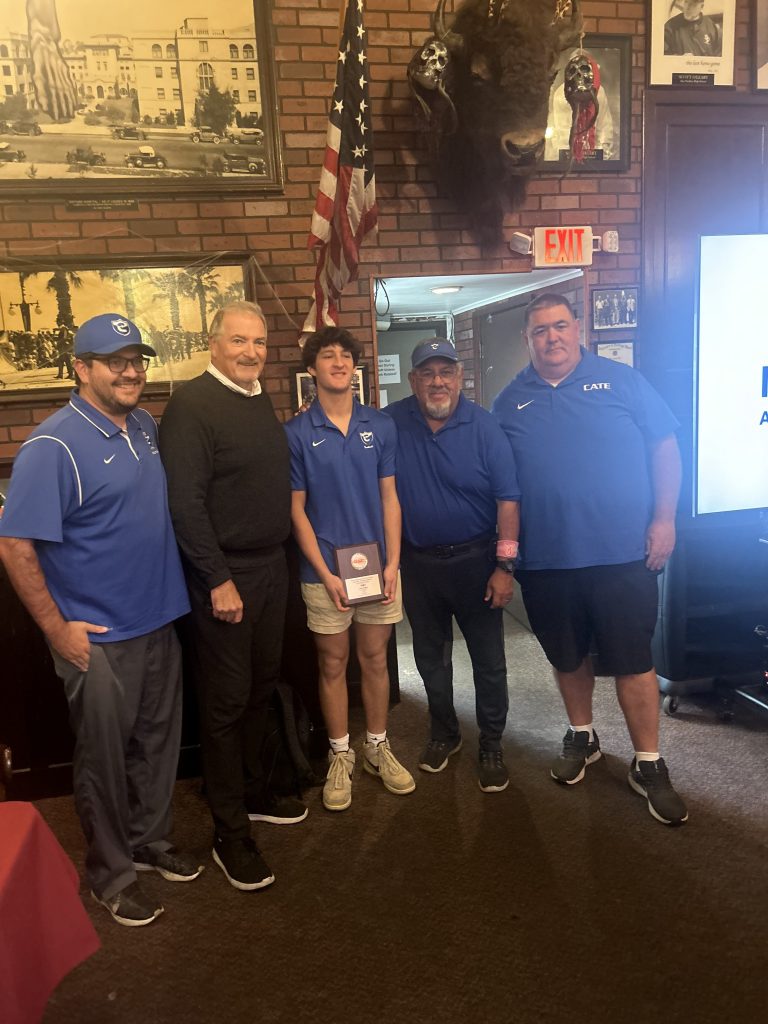 Josh Butler received the Phil Womble Award for Cate school at Monday’s press luncheon. Butler is a starter in football, basketball and baseball at Cate school.