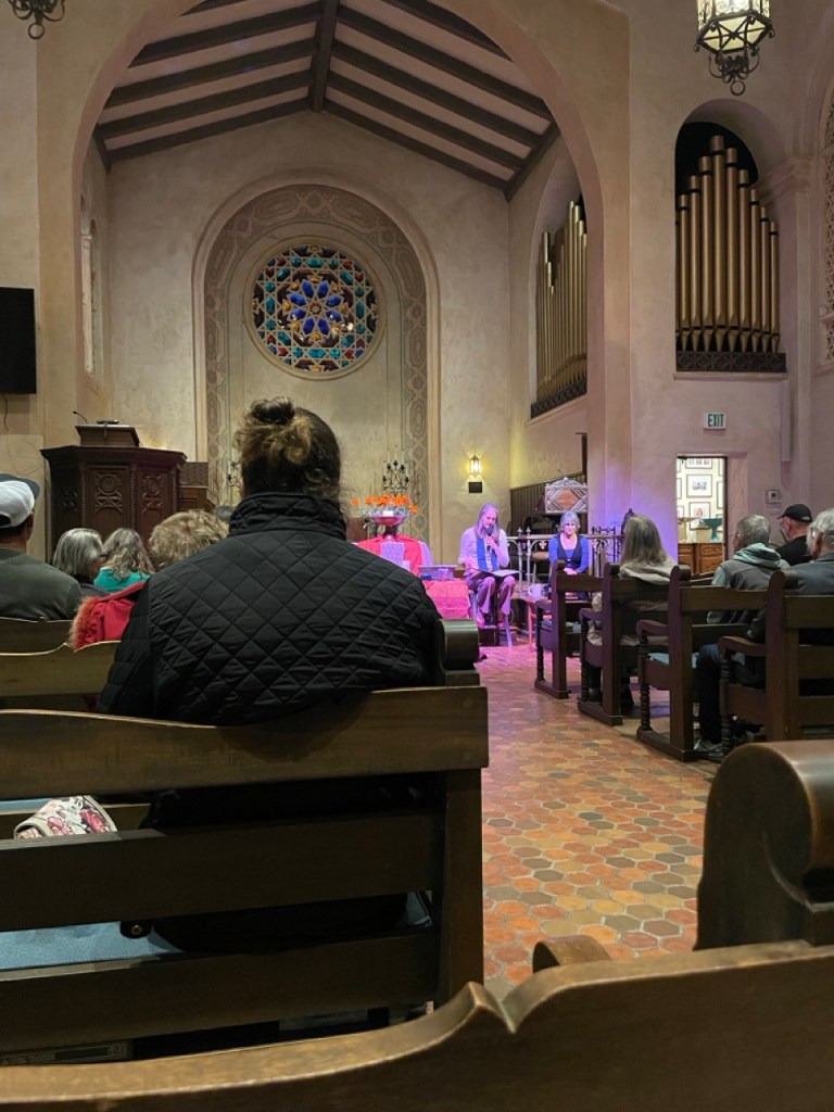 It was an interesting thing — a procession not unlike those of traditional wine-and-cracker-consuming Catholic masses, punctuated by readings of poems and excerpts from different books, and songs of love and comfort led by the congregation’s Charla Bregante. However, it was not religious.