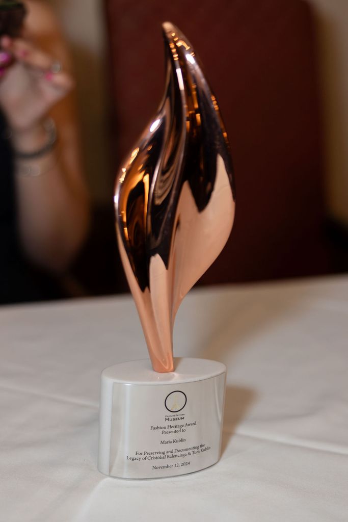 On behalf of the Couture Pattern Museum, Austine-Rademaker bestowed Maria with the Fashion Heritage Award as a tribute to those who “uplift, uphold, observe, and protect art.” Maria expressed her gratitude for this recognition, and when prompted to make a speech, she said, “I feel like I’m accepting a Grammy.”