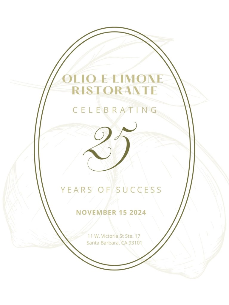 One of the finest Italian establishments ever to call Santa Barbara home, Olio e Limone is celebrating its 25-year anniversary this year. I was a young cub reporter working in the Independent’s offices upstairs at Victoria Court when Olio took over a downstairs address, and I watched as Santa Barbara’s epicureans, business lunchers, and other assorted well-dressed folks began clamoring for seats at the white-tableclothed tables.