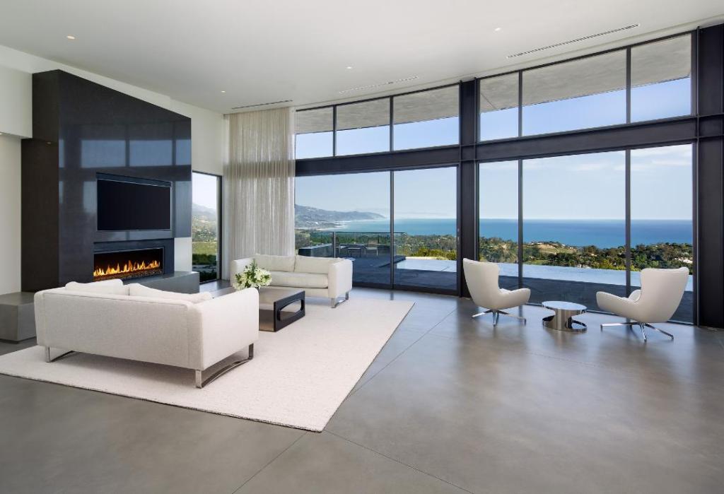 MODERN LUXURY: Taking advantage of world-class views across the Santa Barbara Channel, this single-family residence — with long architectural lines and 12-foot windows to welcome natural light — features the very latest in green technology. With architecture by Tom Meaney and interior design by Cheryl Neumann and Courtney Jordan, the double-framed exterior walls with rigid-panel reflective insulation keep the home cooler in summer and warmer in winter as the state-of-the-art solar system heats the pool, fuels super-efficient LED lighting, and generates surplus energy credits.