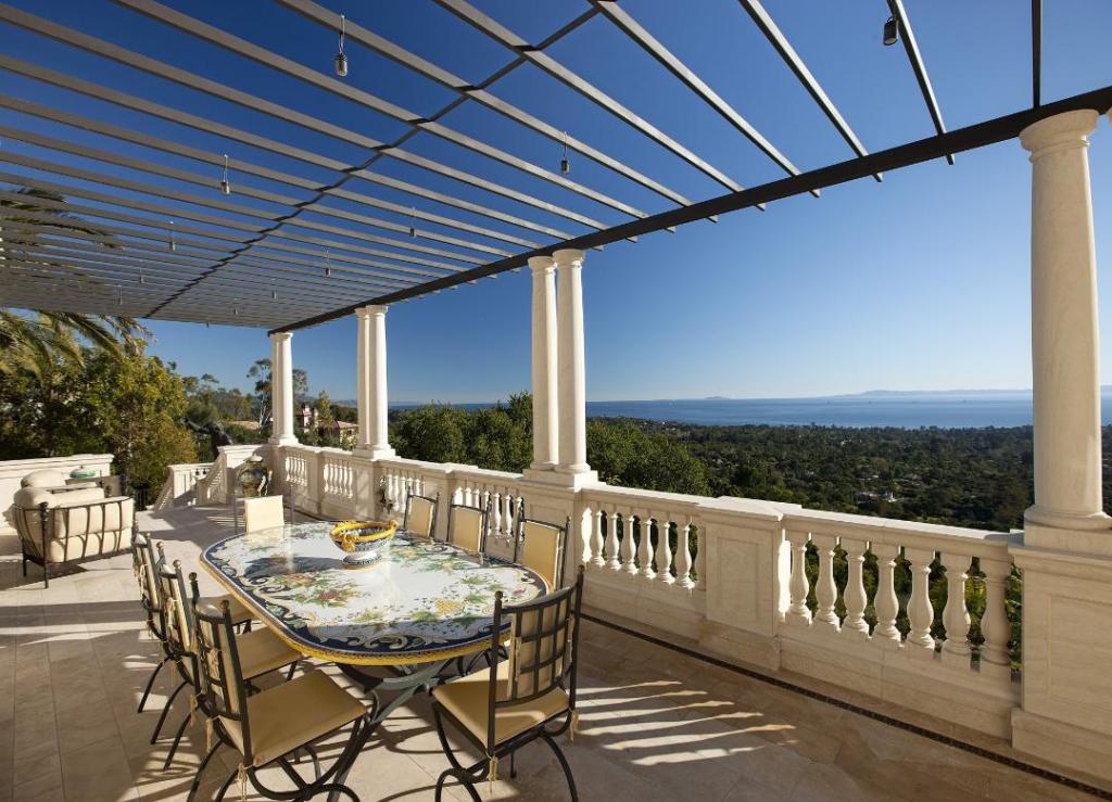 PALLADIAN VILLA: A storied estate of Montecito, this two-story villa covers 5,700 square feet and features three bedrooms, three baths, five fireplaces, and a library, wine room, and collection of paintings, artifacts, and classical statuary. Built on six steep acres, teams from five dozen subcontractors spend nearly three years, foundation to finish, to complete the project ahead of schedule. Architecture by Peter Becker with interiors by Rosie Feinberg.