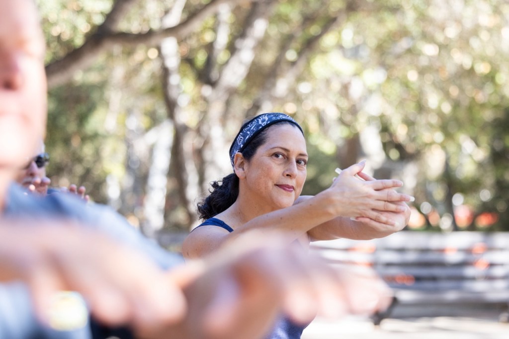 Toni’s philosophy is “nothing hard, nothing fast,” and I never broke a sweat or felt my heart rate go up practicing tai chi with Toni, but I enjoyed being in the sunshine, focusing intently on learning the movements (reminding myself to take smaller steps), and remembering to breathe. My calves did get sore from absorbing all those pushes during Repulse the Monkey, but what I appreciated most was learning to balance by pushing my hands out as if leaning on a post. That simple movement was nothing short of revelatory.