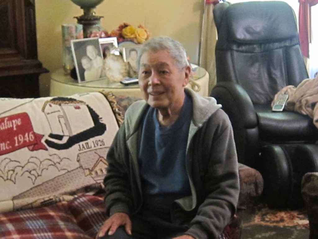 He spoke without a trace of bitterness as he sat on a sofa in the parlor of his house. Behind him was a red and white blanket adorned with a banner: City of Guadalupe, Est. 1840, Inc. 1946 and three illustrated highlights: the jail house, the city hall, and the fire department. We climbed the stairs to a wallpapered bedroom where Harry pointed out a bullet hole in the wall, a remnant of a long-ago protest from a local citizen who was displeased that a Japanese family had purchased the grandest house in town.