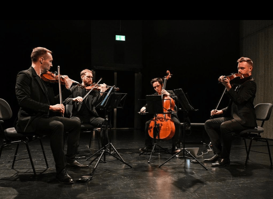 Just as Motel 6 outgrew the origin story of its name — offering motor hotel rooms for six dollars — JACK’s origin story has shifted. It all began in 2005, with students of the Eastman School of Music championing contemporary repertoire and as an acronym of its founders’ first names, being violinists Christopher Otto and Ari Streisfeld, violist John Pickford Richards and cellist Kevin McFarland. Currently, the lineup replaces Streisfeld with Austin Wulliman and McFarland with Campbell.