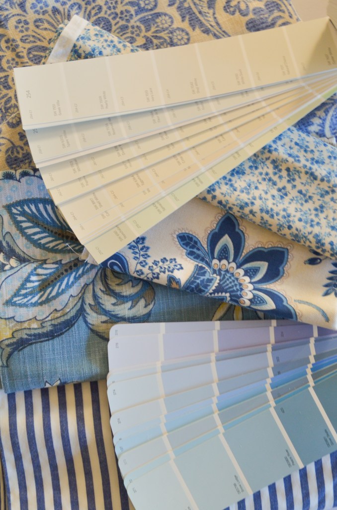 If you are redesigning your whole room, start with some inspiration. I usually start with a fabric I love that I’ll be using as an accent for pillows or window treatments. If you choose a fabric that has a pattern and colors you love, you can pull together the other colors in the room from that fabric swatch, including paint! For example, choose a floral or stripe that has several color options, and then take it with you to the paint store. This way, you can hold your fabric directly against the paint chips you are considering. You can see what works and what doesn’t. Whether you are staying neutral or going bold and moody, taking items with you that will show up elsewhere in the design will ensure you keep everything coordinated and connected.