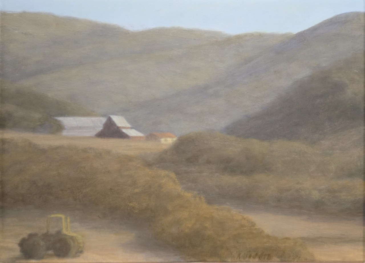 John Wullbrandt’s “Barn at Sedgwick Reserve” captures, with a precise eye and hand and a certain wistful gaze, a structure on this mythic ranch property in the Santa Ynez Valley. Wullbrandt’s painting represents a view of lesser-known or less easily accessed natural zones in our midst, a seeking-out agenda that is also part of the Oak Group scope. Sarah Vedder deploys her characteristic soft-focus approach with “Afternoon on Jalama Road,” a personal variation on the post-impressionist mode and a dreamy scene with tractor and barn structures tucked into the rolling hill forms.
