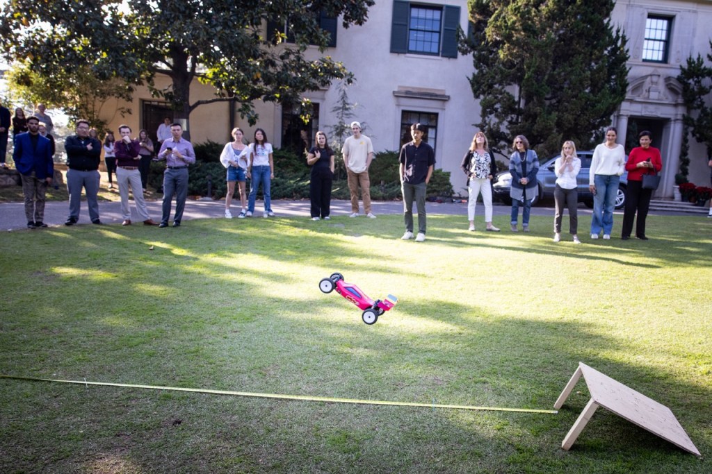 It was Thursday afternoon, and sunlight poured over the manicured Kerrwood Hall lawn where hordes of Westmont College students flocked to witness an annual spectacle. Remote-control race cars zoomed across the green in anticipation of the upcoming competition. One car was decked out in all pink, dubbed the “Barbie” car, another was attached to a pair of wings, and others were painted with eclectic designs and insignias.