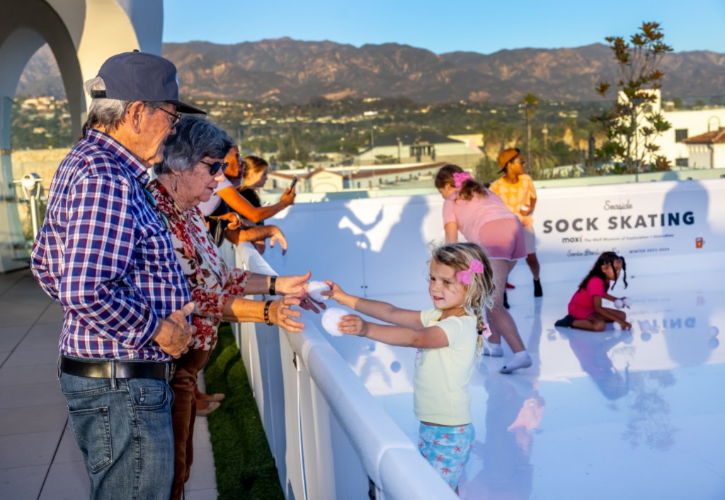 As a final note, Bertucci encourages everyone to participate: “The sock-skating rink is fun for any age! We love seeing the creativity of kids and parents who indulge their inner ice dancer, hockey player, or snowball enthusiast.” She believes that this event should be marked on any family’s holiday to-do list of downtown Santa Barbara.