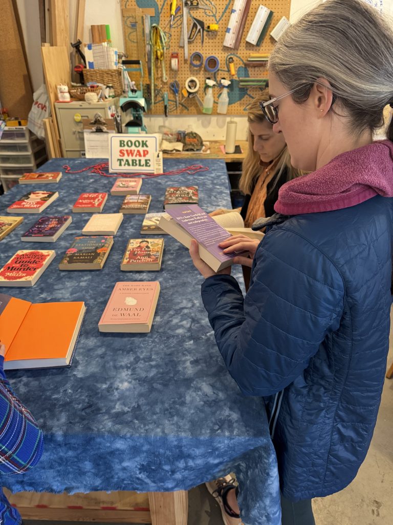 The group of mostly women warmed up by congregating around the book exchange table. “I think a book exchange is the essence of community,” said Michaela McGinnis, the organizer behind Literally Amazing S.B. Everyone, it seemed, wanted to talk about their books. After filling their plates up with snacks and finding somewhere to perch, book flaps and back covers were read before final selections were made. There was even some petitioning for one’s own donated covers (myself included), while others raved about familiar titles set out.