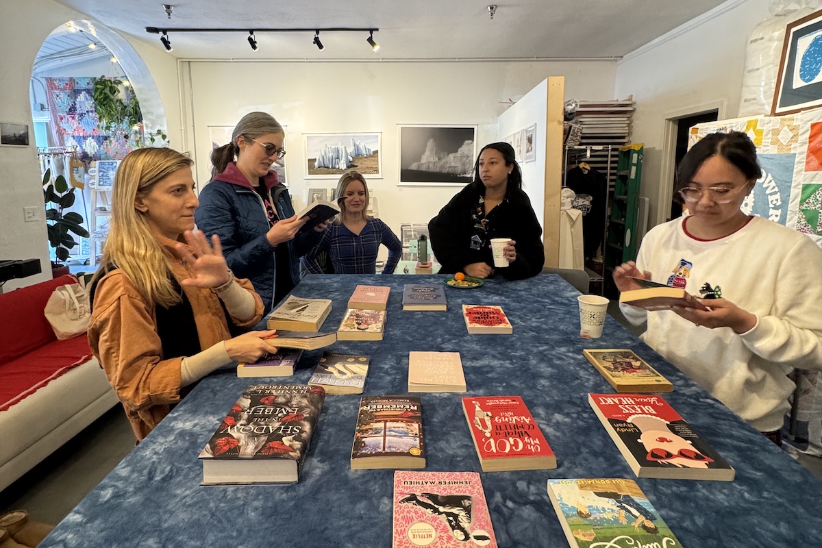 The group of mostly women warmed up by congregating around the book exchange table. “I think a book exchange is the essence of community,” said Michaela McGinnis, the organizer behind Literally Amazing S.B. Everyone, it seemed, wanted to talk about their books. After filling their plates up with snacks and finding somewhere to perch, book flaps and back covers were read before final selections were made. There was even some petitioning for one’s own donated covers (myself included), while others raved about familiar titles set out.