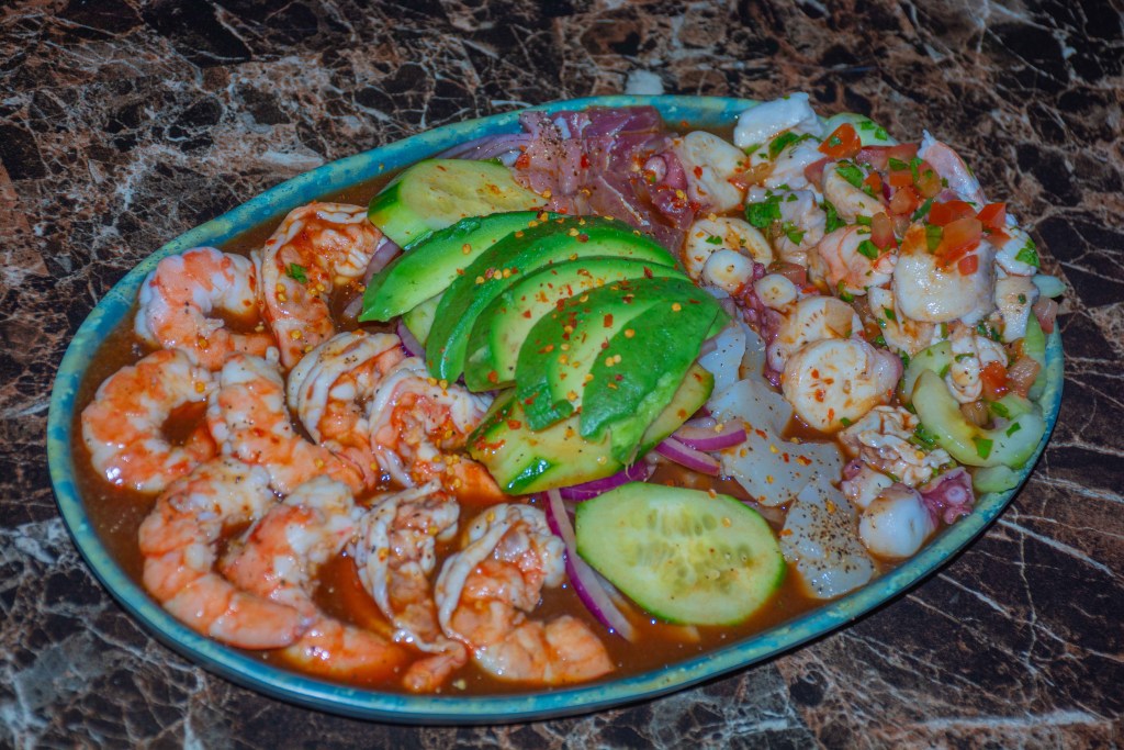 No doubt they are toasting him with coctels (seafood cocktails, but there is beer too) such as Vuelve a la Vida, an extravagant combo of shrimp, octopus, scallop, and oysters. The menu is big on oysters. Or diving into the bubbling-as-it-hits-the-table Molcajete a la Cucaracha — which dares you to translate it literally — a peppery pot of shrimp, octopus, clams, mussels, and snow crab legs in a kicky deviled sauce.