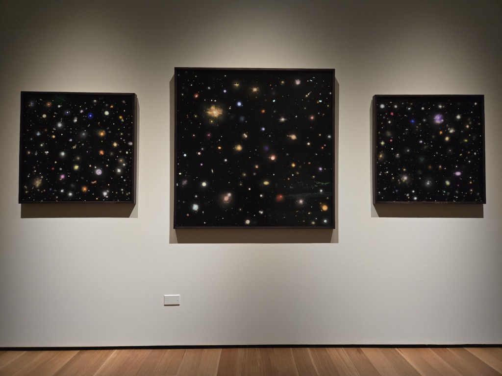 A separate film viewing module at one end of the McCormick Gallery intentionally allows only a small number of viewers to bask in the pop-up theater space, letting us sink more effectively into the film’s mutating flow of footage from outer space and “cosmic quietude,” the glories of human achievement as well as the ravages of WWI trench warfare, and other collaged and montaged material, while Ashbrook’s meditative ambient musical score wafts over the saga.