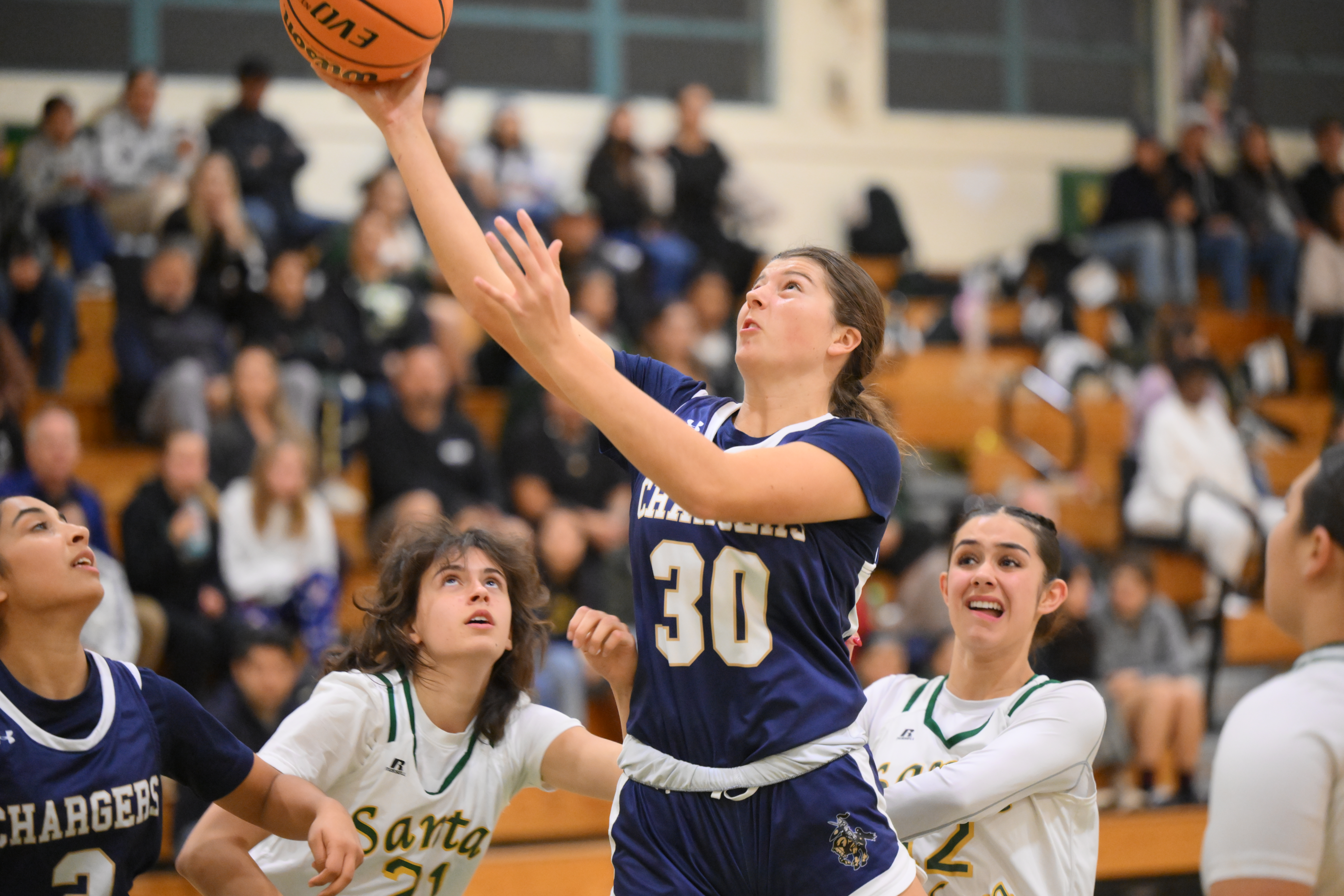 The Chargers jumped out to an 18-0 lead on a three-pointer by Eden Wynne midway through the first quarter. Santa Barbara finally got on the board at the 2:59 mark on a Dayzia Mendoza basket off an assist from Rosie Dionicio.
