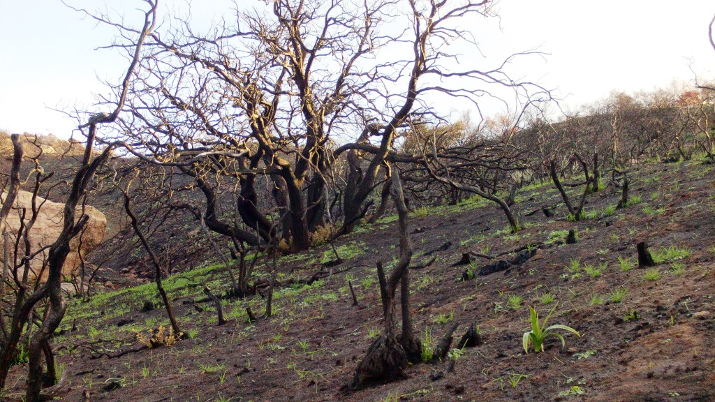 [Click to enlarge] Manzanita sprout, macro (left); Sage sprout, regrowth | Credit: Ethan Turpin