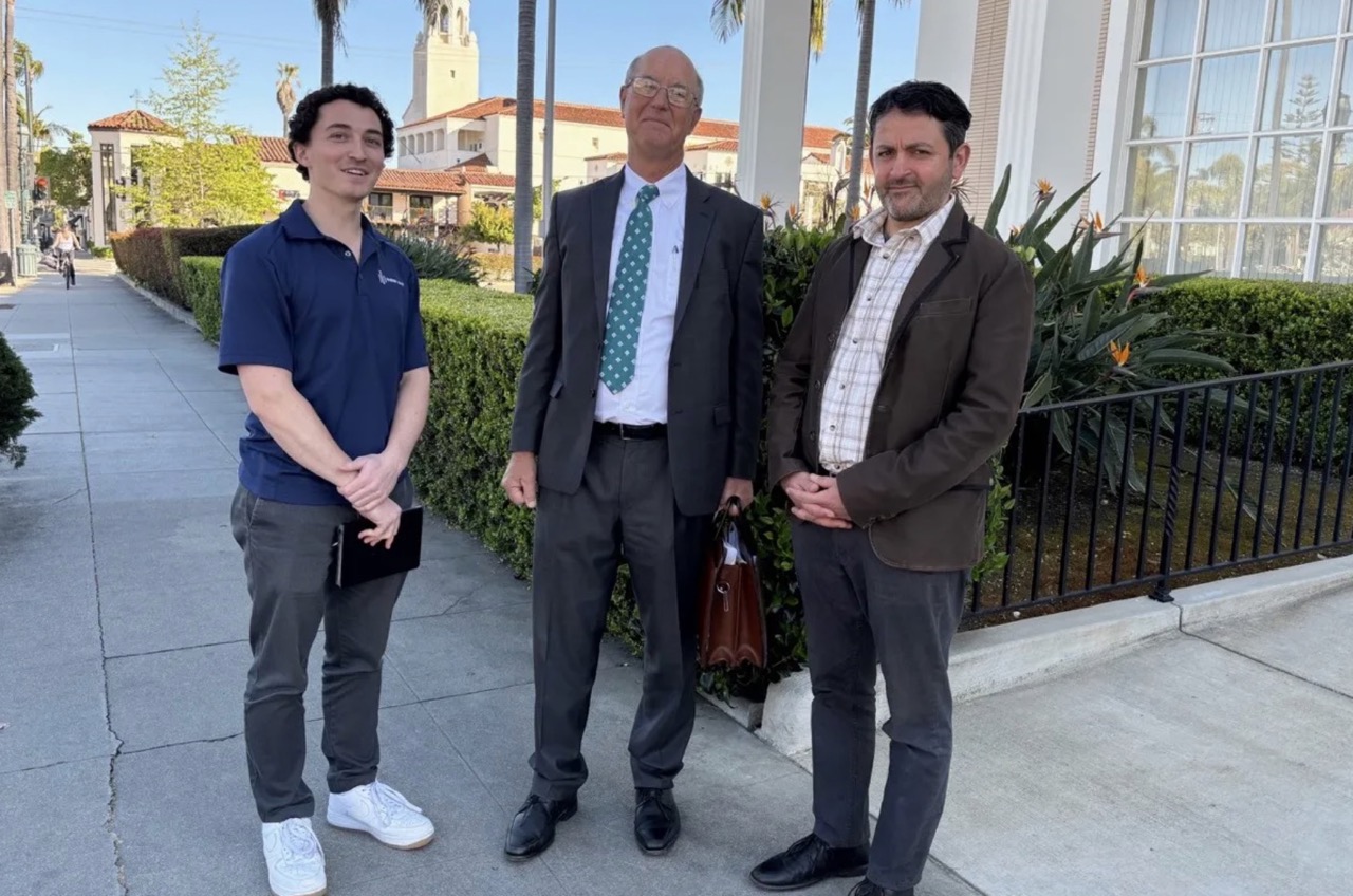 Pictured after the successful acquisition of the "Santa Barbara News-Press" digital archives — which included the bankrupt newspaper's trademark, copyright, and website — are Ben Romo (right), his attorney Will Beall, and Will Belfiore, who helped expose the Malta company that had been angling to buy the rights. Romo and Jason Yardi have donated the website to Arizona State University's NewsWell nonprofit to resurrect the defunct site. | Credit: Courtesy