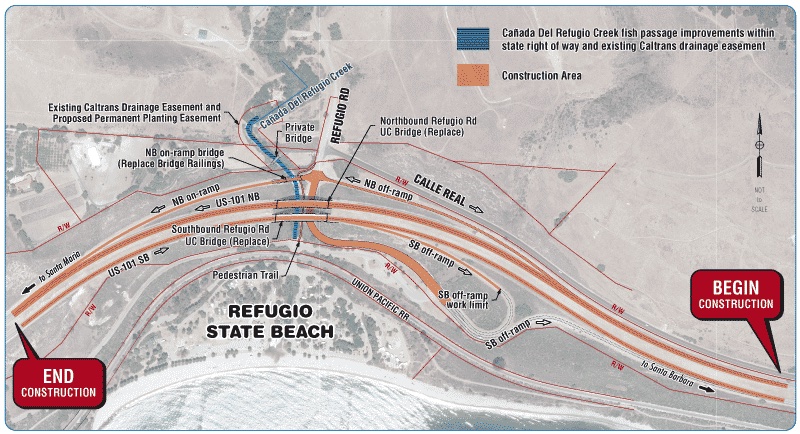 Motorists traveling over Highway 101 between Lompoc and Santa Barbara have noticed for a month or two that the southbound highway crosses over into the northbound lanes as preparatory work takes place to replace the bridges over Refugio Creek in Gaviota. The southbound bridge is set to be demolished starting on Tuesday, January 28. The new configuration will continue through October, when it will switch to the opposite side, Caltrans said.
