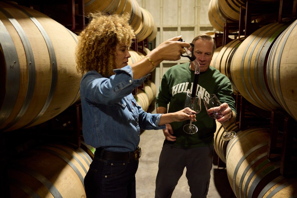 She approached the team at Dragonette Cellars to make her wine, explaining, “I loved their wines and their philosophy.” But they didn’t just take her on right away, instead testing how serious she was about the project. Winemaker Brandon Sparks-Gillis prescribed books, podcasts, and the WSET training regimen, and she kept coming back, saying. “Give me more. Give me more.”