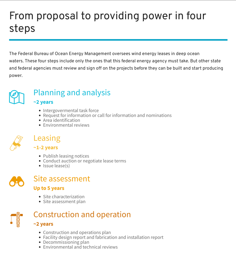 California’s offshore wind projects are in early planning stages but would be part of the state’s goal of producing 25 gigawatts of offshore wind power by 2045, powering 25 million homes and providing about 13% of the state’s power supply.
