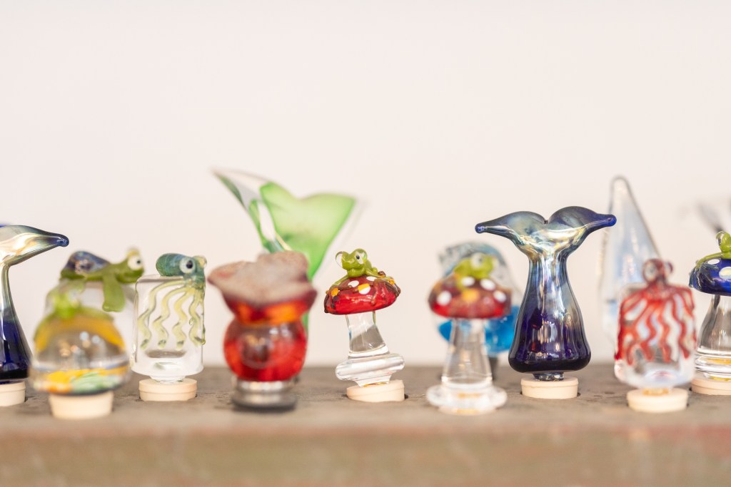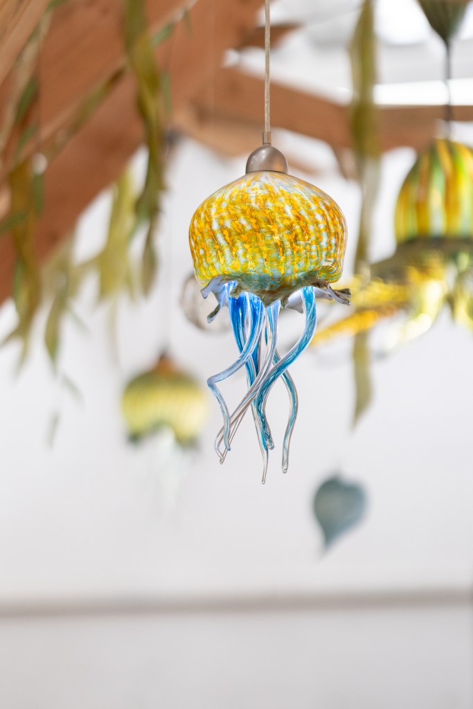 In a space nearly five times the size of their former studio, the family business now includes an office for Gina, double the retail space, two stations for glassblowing, and a dedicated room just for welding (another of Saul’s growing skills). “I run the business, and Saul has fun,” Gina says, laughing. “It’s a joy to come to work every day.”