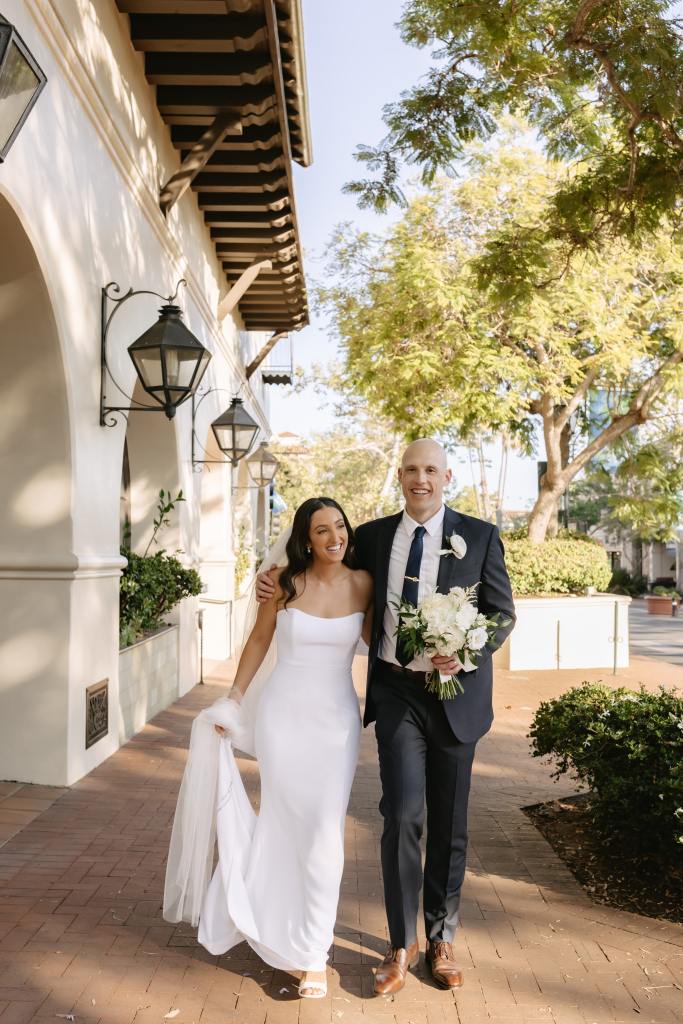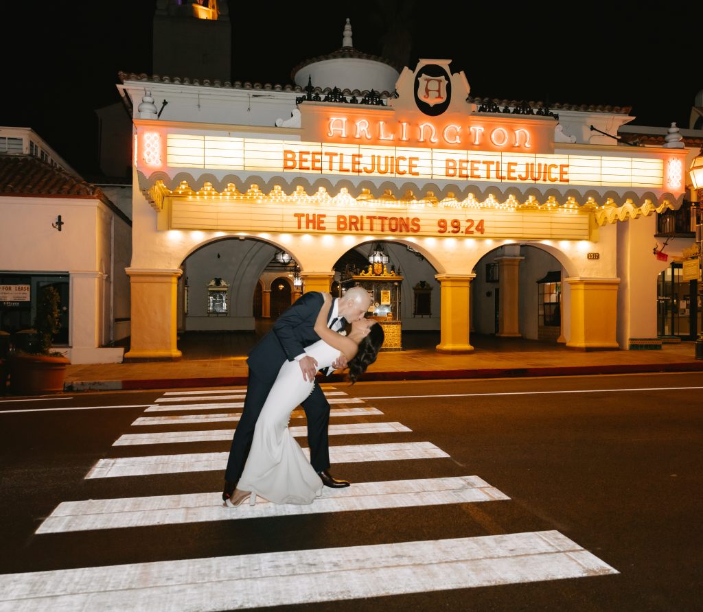 Thus began the planning for a very Central Coast wedding, complete with a taco truck, craft beer and local wine, a wedding on the courthouse lawn, and photos in front of the Arlington Theatre with Lindsay’s and Aniki’s names emblazoned on the marquee. The couple met many of their planning and organizational needs through Instagram research, including their reception venue, Villa & Vine, on the corner of State and Arlington. A popular reception venue for medium-sized wedding parties, Villa & Vine can offer suggestions for local vendors they typically work with, which is particularly helpful for out-of-town couples. Like many venues, they tag their collaborators on their social media, so swipe around to see what’s been offered at previous events.