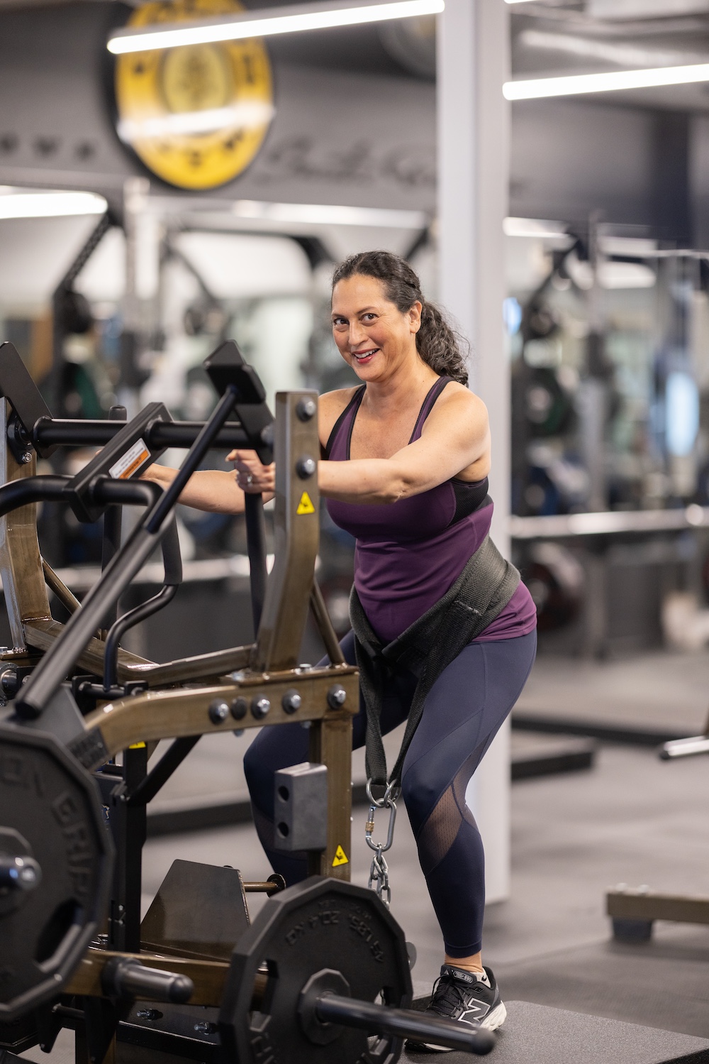 The remodel wasn’t limited to the old group fitness room, though. Once we ventured back out to the main weight area, Guggenmos proudly pointed out that the machines, free weights, and racks on the first floor were all new — part of the half-million dollars’ worth of equipment purchased for the remodel. And a happy side effect of dedicating a room to lower-body strength training, Guggenmos said, is that members feel less cramped on the main weight floor. (Maybe the new space should be called the elbow room.) The downtown location features Hammer Strength and Life Fitness machines, as well as classic Nautilus machines upstairs, to accommodate members’ preferences for specific product lines.