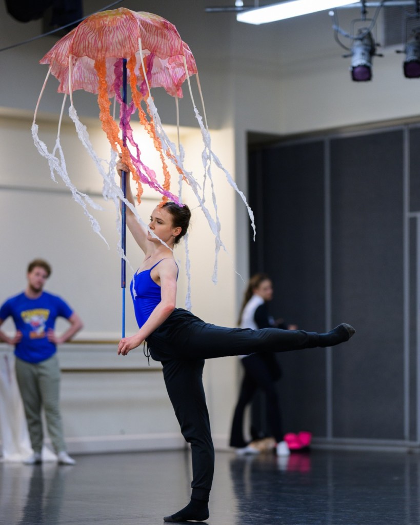 The dancers alternate between pure dancing roles, dancing-with-puppet roles, and pantomime roles in which they manipulate the larger-than-life puppets to create the underwater scenes, explained MacDougall. SSB has no hierarchical structure like other companies; all the artists are soloists in their own right, and they all work together to make the productions happen.