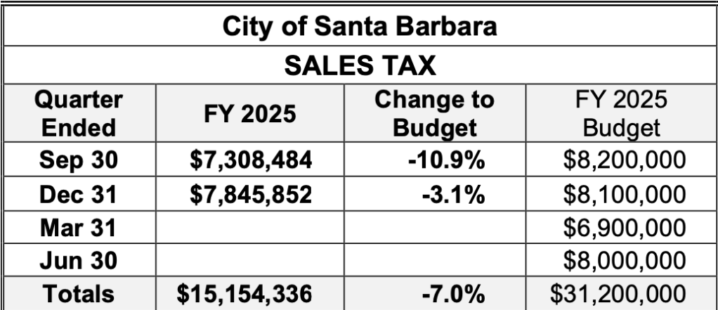 The City of Santa Barbara received $7.8 Million in sales tax revenue during the quarter ended December 31, 2024, which is the second quarter of the City’s fiscal year.