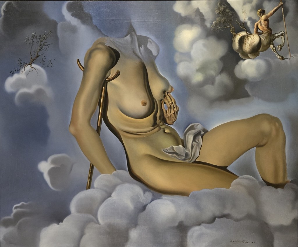 Salvador Dali’s nude from outer and inner space, “Honey is Sweeter than Blood,” always begs for our attention, again and again. A newer entry from the Surrealist camp is the eye-snatching Dorr Bothwell painting “Family Portrait,” a bifurcated, double-identity portrait of a child.