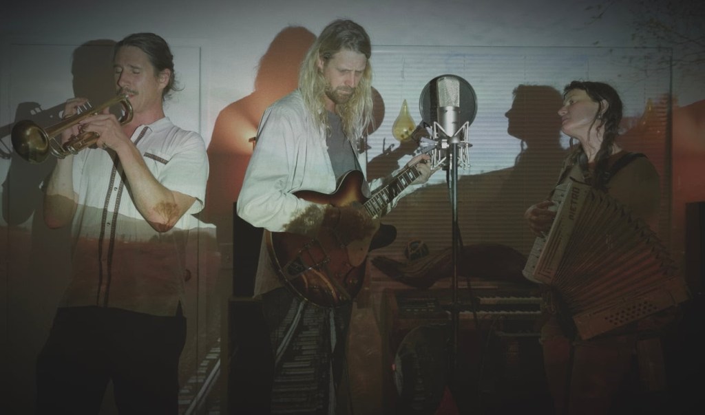 Not surprisingly, Hattie and the Candy Mountain Rambler are also musicians with a fine and moody wonder of an album just out under the band name Farewell Stranger, A Storm of Things (check out Bandcamp site here), and are headed to Wylde Works on Saturday at 7 p.m. for a release show. On this lovely, reverb-swaddled song set, the leaders wrap their unforced, loose-fit voices around the melodies and swim in pools of languid deliciousness, with the third voice being a trumpet (somehow, the effect keeps reminding me of Peer Raben’s mesmerizing scores for Fassbinder films). Indie folk might be a categorical catch-all, but they go wherever the mood leads them, into the aptly named shoegazer “Waiting for the Train,” segueing into the rolling train groove of “O How You” and closing with the slow-mo waltz/anthem “Now That Our Dreams are All Falling Apart.”