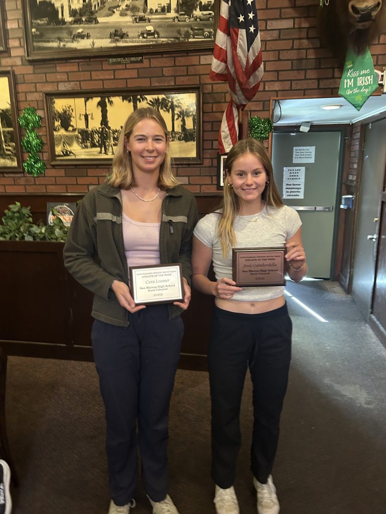 The Santa Barbara High beach volleyball duo of Cora Loomer and Josie Gamberdella shared Athlete of the Week honors after going 3-0 at court No. 1 in victories over Oxnard, Dos Pueblos and Santa Barbara. Loomer and Gamberdella won all three matches in straight sets, including a 21-0 win over Oxnard.