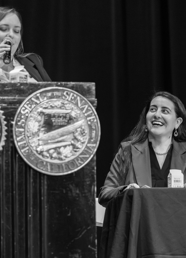 When Senator Limón’s staff called to the stage the Environmental Defense Center’s chief counsel, Linda Krop — who hosted a star-studded press conference beforehand with state legislators, actors Julia Louis-Dreyfus and Jane Fonda, and Ventura-based Patagonia CEO Ryan Gellert, among others, outside the EDC’s headquarters — the town hall shifted gears from an info-session into a quasi-rally. Krop’s emotion-inciting words, followed by an angry, passionate speech from Louis-Dreyfus, put the room into a cacophony of cheers and jeers.