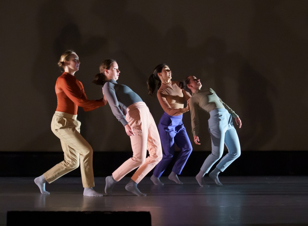 Again, Ventura’s choices of music were delightful and refreshingly recognizable. John Coltrane’s smooth jazz piece “Alabama” flowed into the foxtrot-like piece “I’ve Heard That Song Before” by Harry James and Helen Forrest, which melted into the dramatic orchestral piece “Fallout,” from Arcane, League of Legends by Ray Chen. The finale was a jazzy rendition of the traditional Russian folksong, “The Volga Boatmen,” by the Glen Miller Orchestra. What a clever, ingenious choice of music! This traditional Russian song, normally sung by an all-male chorus such as the Red Army Choir, expressing iconic masculine solidarity, was presented with a dissonant, big-band sound, almost mocking the original. In reflecting on the music after seeing the production, it was a perfect end to a piece that was meant to challenge traditional gender stereotypes. The maturity of the young dancers was evident in their passionate expression of Ventura’s challenging themes. Well done!