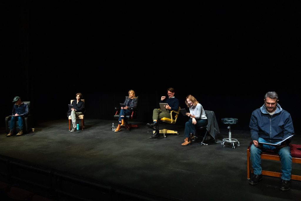 Full of clever, sometimes-brutal humor, and tender, relatable discussions about moving through life’s most overwhelming shifts, Parents in Chains, presented as a “disguised” reading by Ensemble Theatre Company in association with J. Todd Harris, is a smooth, comic pleasure. Jay Martel’s brand-new play follows six parents on a series of group text chains initiated to keep each other “informed” while their daughters, recent high school grads, are on a “last hurrah” road trip from L.A. to S.F. before starting new lives (mostly at college) in the fall. The conversation thread amongst parents, including type-A steamroller Murial, distracted, incomprehensible Connor, and depression zombie Rick, quickly devolves into tribal allegiances and a series of side-convos that illustrate how these middle-aged adults are coping with finding meaning in a life that has, in a variety of ways, taken from them that “thing” they had passionately invested in for so long — whether it be a relationship, a career, or a child.