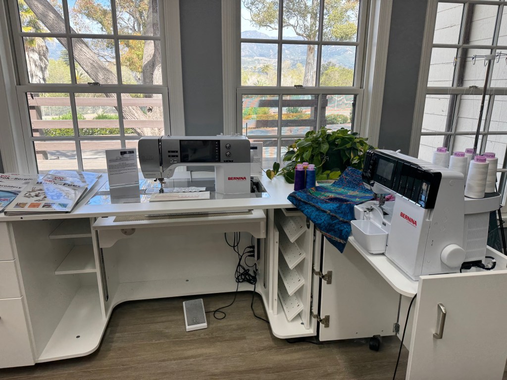 What’s clear is the vibrant caring both Murphy and Cardy share for the sewing community. It’s how Murphy first fell in love with the industry, and what she plans to continue building with Sew Santa Barbara. The shop is a member of the Santa Barbara Fiber Arts Guild as well as Coastal Quilters Guild of Santa Barbara & Goleta, and hosts the “Sticker’s Night Out” meetings for the Fiber Arts Guild. Be on the lookout for sessions on everything from garment sewing and free-motion to upcoming classes on alterations and upcycling. And come April, the shop will have a certified BERNINA technician onboard to service machines (he’s certified on other machine brands, as well). So, get ready to sew, Santa Barbara.
