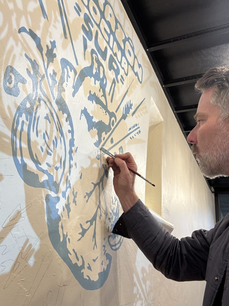 Crawshaw said the mural, hand-painted in “secret cove” blue, was designed to be reminiscent of a tattoo sleeve, with a tapestry of imagery inspired by both Mexico and the Central Coast.