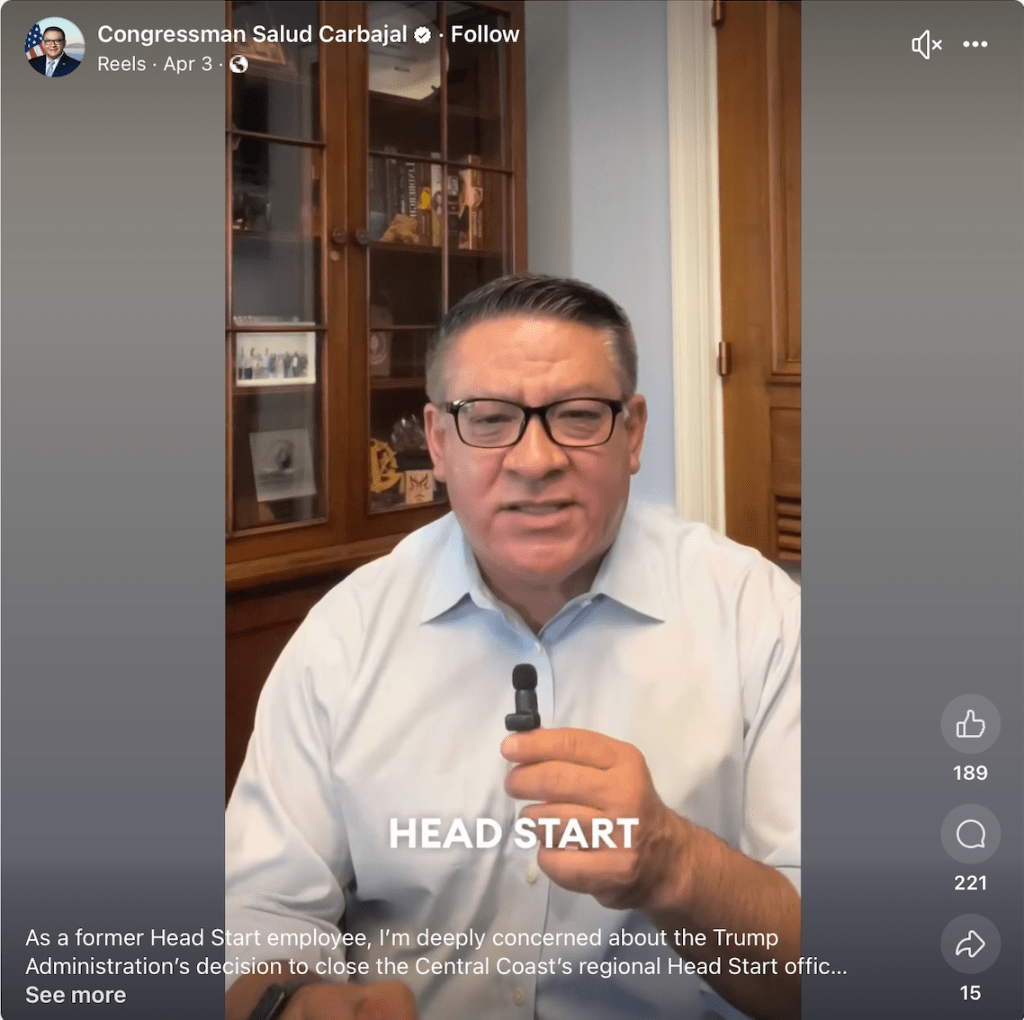 Santa Barbara Congressmember Salud Carbajal — who himself worked several years at Goleta’s Head Start — and 33 other Congressmembers issued a letter on April 2 demanding that Kennedy explain what criteria his department used when deciding which regional offices to close, at what time regional staff were notified, and how Kennedy’s department planned to compensate for the loss of these critical support services. Their letter expressed “deep concern” that the “abrupt closures — without a clearly communicated transition plan — put the education “of our nation’s most vulnerable children and families at risk.”